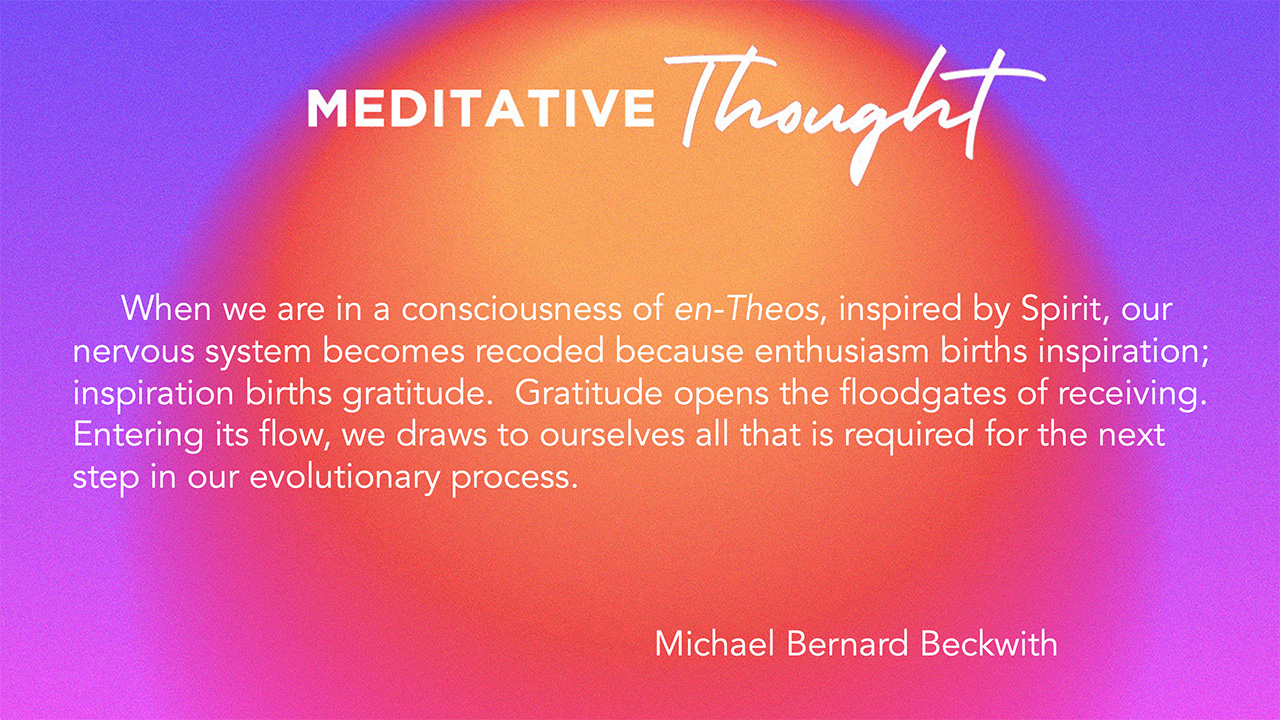 When we are in a consciousness of en-Theos, inspired by Spirit, our nervous system becomes recoded because enthusiasm births inspiration; inspiration births gratitude. Gratitude opens the floodgates of receiving. Entering its flow, we draws to ourselves all that is required for the next step in our evolutionary process.